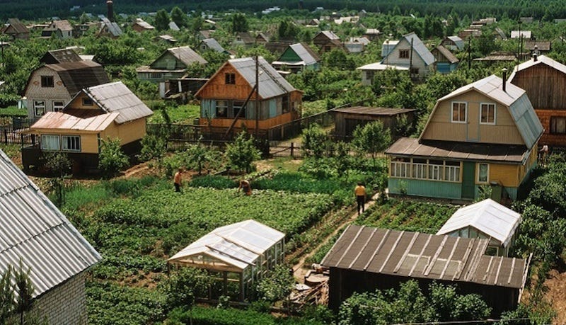 Dachas, as we know them today, started to evolve in the early 1950s. Back then, the Soviet government realized that the Soviet agricultural system was not efficient enough to provide food for the entire population of the country. They started to give pieces of land for free, so people from cities could grow their own produce and feed their families in this way.